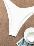 2025 Women White Bikini Chest Padded New Sexy Halter Bikini Two-Piece Set With Drawstring Straps Solid Brazilian Bathing Suit