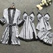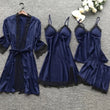 4PCS Sleepwear Pajamas Set Silk Women Nightdress Lace Dress Robe Sleep Nightwear Silk Solid Color Pijama Sets