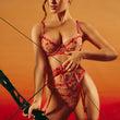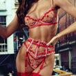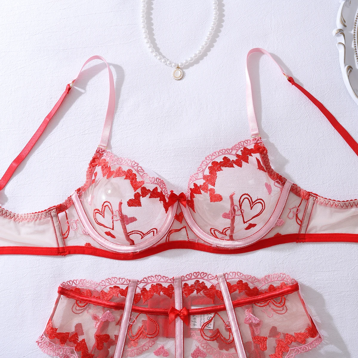 Color blocking heart embroidery perspective sexy lingerie mesh fishbone waist shaping sexy lingerie four piece set