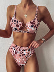 High Waisted Bikini Set for Women - Leaf Print Push-Up Padded Bathing Swimsuit Beachwear