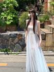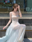 Korean Style Sweet Women's Mesh Backless Suspender Dress Summer New Fashion Y2K Party Women Waist Up Vacation Style Midi Dress