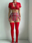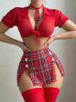 Lingerie Set for Women - Sexy Lace Lingerie Set with Tie Top and Mini Pleated Skirt