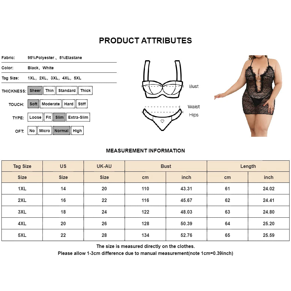 Plus Size Women's Sexy Lace V-Neck Babydoll Bodycon Ladies Nightdress Sleepwear Nightwear Nightie Pyjamas Pjs Size 1XL-5XL