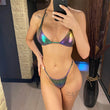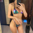 Made from high-quality PU faux leather, this bikini not only captivates with its unique texture but also ensures durability and comfort. The halter neck design provides excellent support, helping you feel confident and secure while you soak up the sun and enjoy the water.