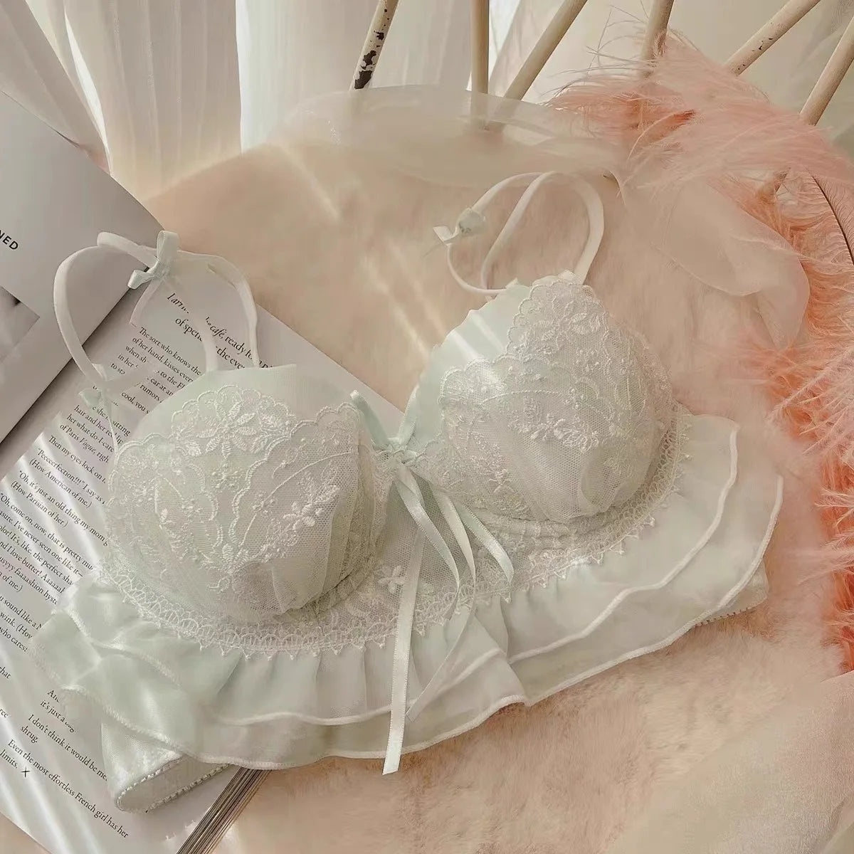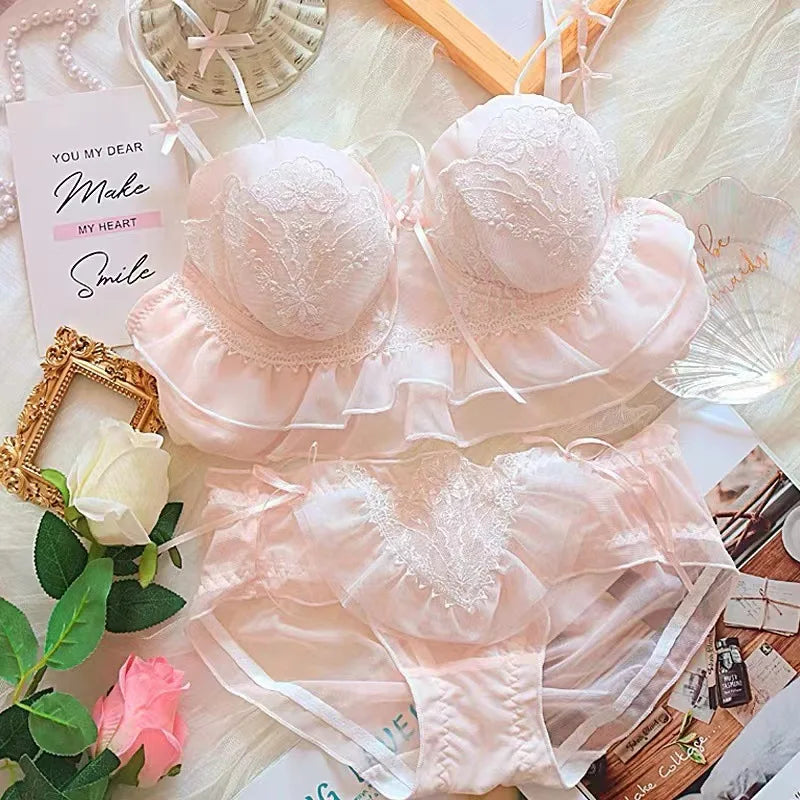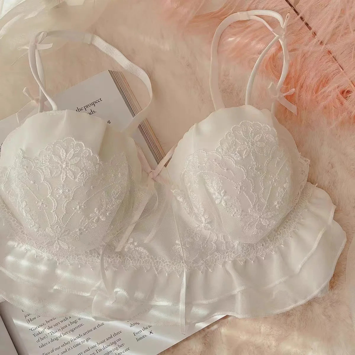 Name: Pure desire lace,Lolita Japanese,Women's bra set,Sexy Lace,Small Breast Gathering,Embroidery,Thin Mesh,Lateral Breasts,Bra Set,Sweet and Cute,Simple Fashion,Bowtie half cup,Japanese and Korean style,New style