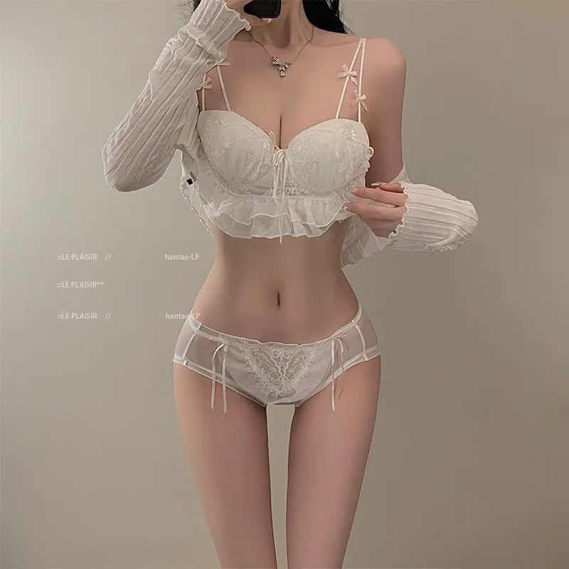 Pure Desire Japanese Women's Bra Set Lace Small Breasts Gathered Embroidery Mesh Sexy Collection Side Breasts Bra Set