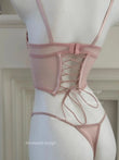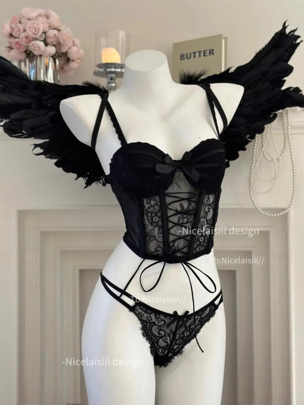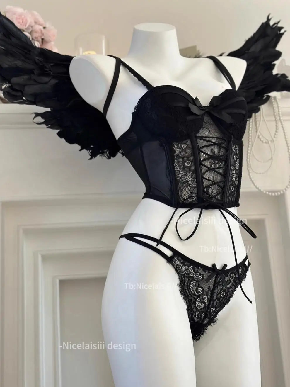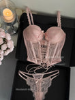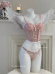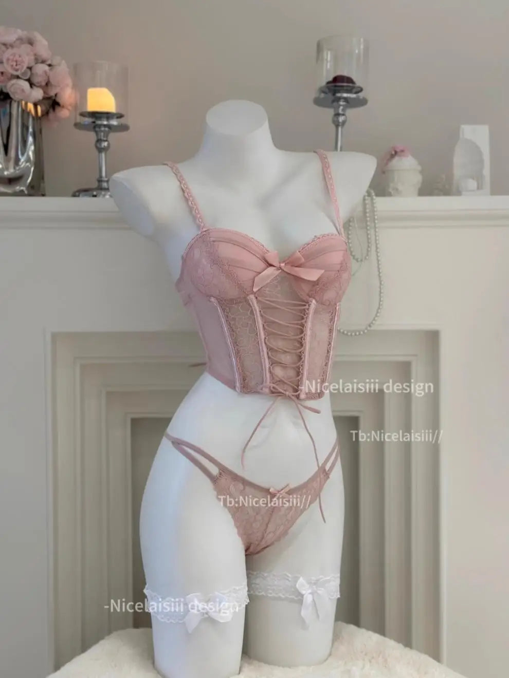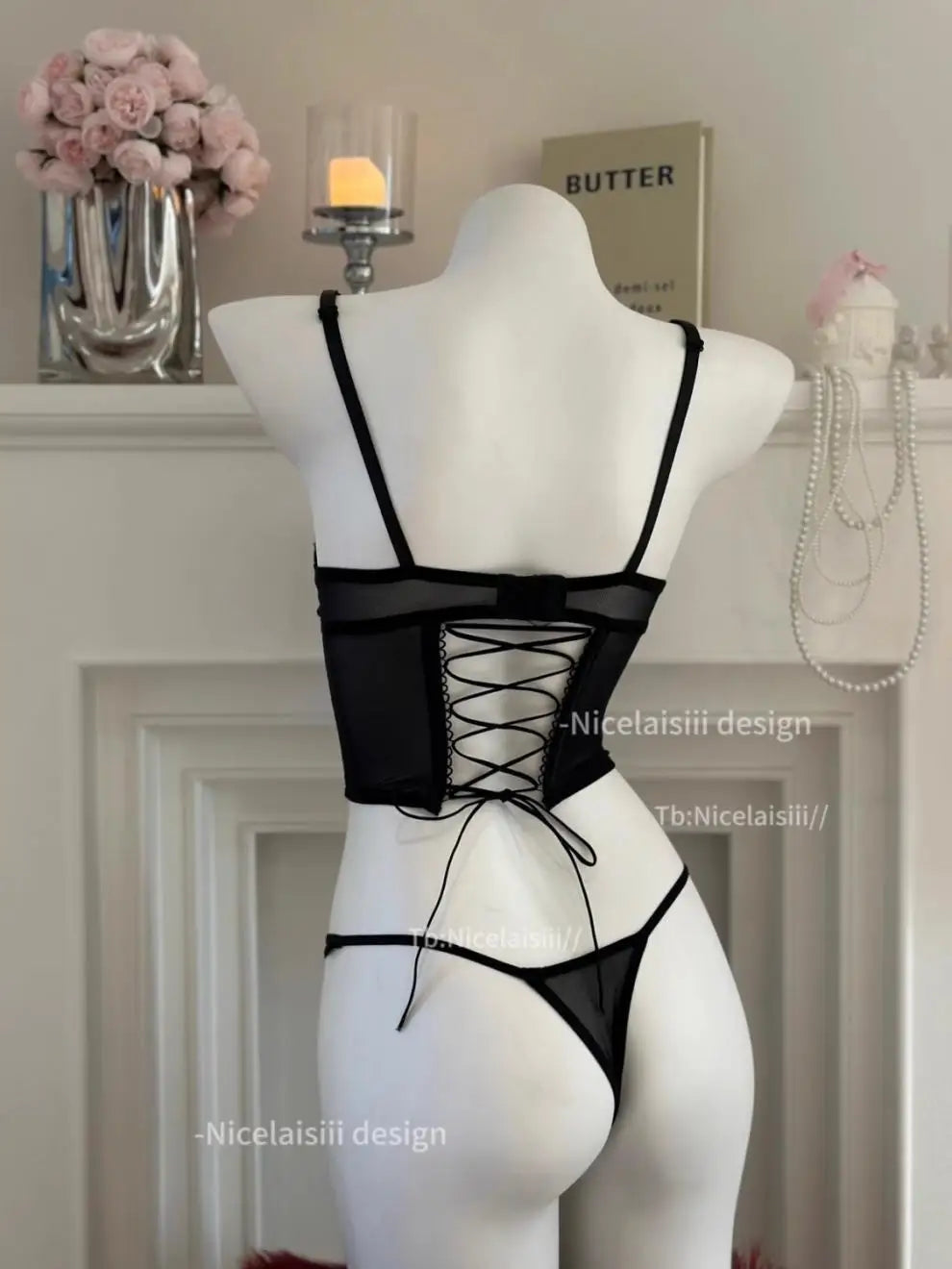 Sexy Lace Bra Set Sweet Fishbone Halter Tank Top with Bra Pads Gathered Top Thin Bottom Thick Design Women's Lingerie Set