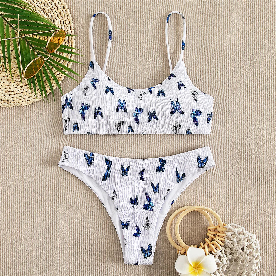 This bikini showcases not just style but also confidence, allowing women to express their individuality. Pair this bikini with a cover-up or accessories for a complete beach look. Create lasting memories this summer with the Sexy Wrinkled Butterfly Printed Bikini, a must-have addition to your swimwear collection.