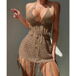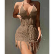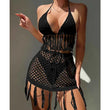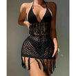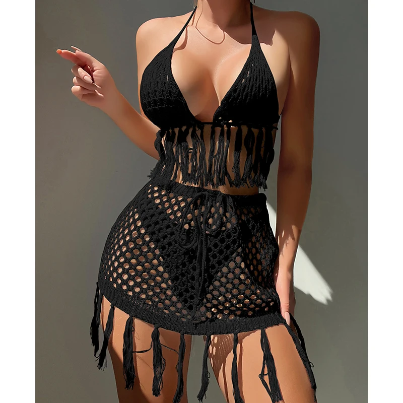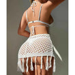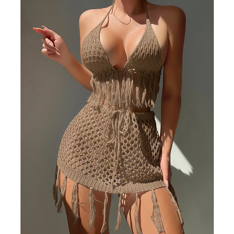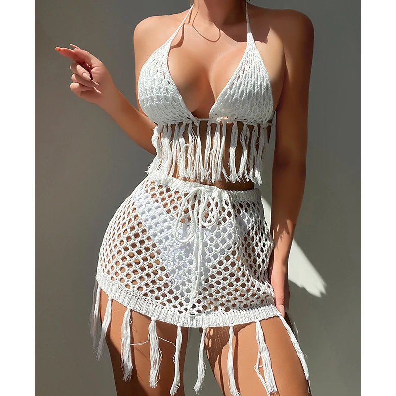 Two-piece Crochet Teens Women Sexy Bikini Cover Up Set Binding Rope Tassel Swimsuit Summer Holiday Knitting Beach Wear