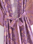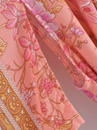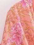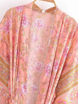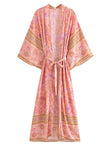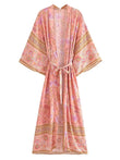 Vintage Chic Women Pink Floral Print Sashes Bohemian Kimono Ladies V Neck Batwing Sleeves Rayon Boho Robe Bikini Cover-ups