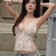 WhereMery Sexy Lace Off Shoulder Backless Top Y2K Hotsweet Sleeveless Halter Crop Tops Casual Summer for 2024 Street Party Camis
