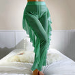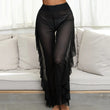 Women Beach Cover Up Pants High Waist Mesh Ruffle Trim Trousers for Bikini Holiday 2025