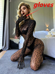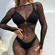 Women Lingeries Leopard Vintage Fashion Lace Up Suits Black Sexy Slim Bodysuits Jumpsuit Streetwear Long Sleeve Backless Bodycon