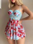 🌸 Women's Lace Underwire Floral Babydoll Nightgown & Thong Set