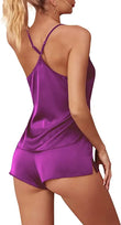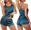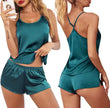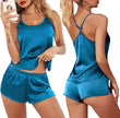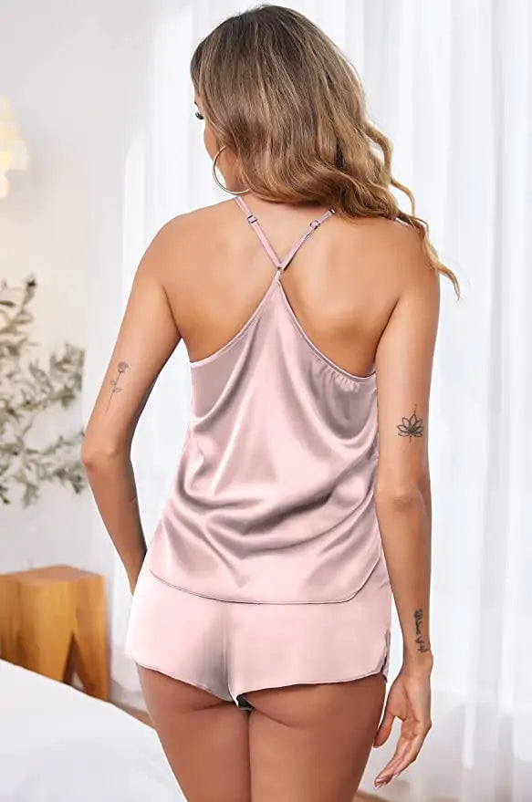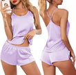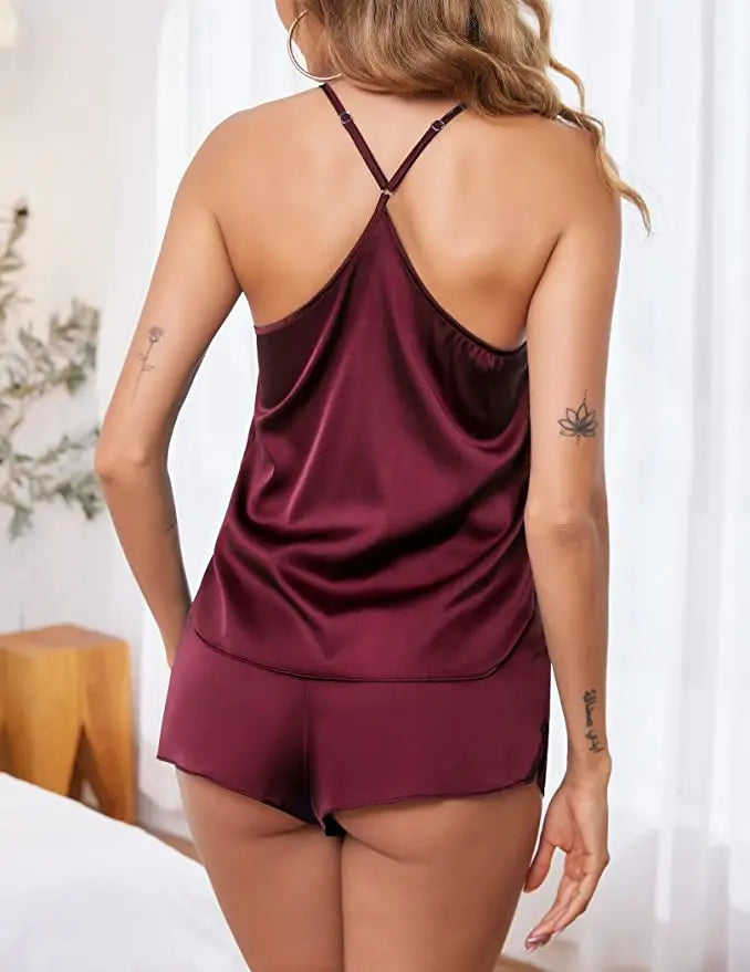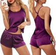 Women's Satin Lace Pajama Set - Sexy Shorts & Sleeveless Top 2-Piece Nightwear