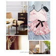 Women's Satin Pajama Set with Ruffled Edges and Bow Shorts - Breathable Home Clothing