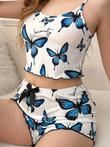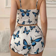 Women's Summer Ice Silk Pajamas Set Butterfly Print Spaghetti Strap Loungewear Set